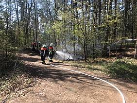 Beim Eintreffen der FF Mimberg wurde festgestellt, dass das Feuer nicht am Bahndamm sonder im daneben gelegenen Waldrand war.