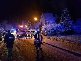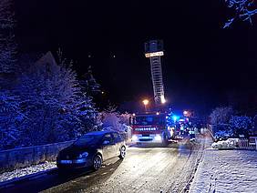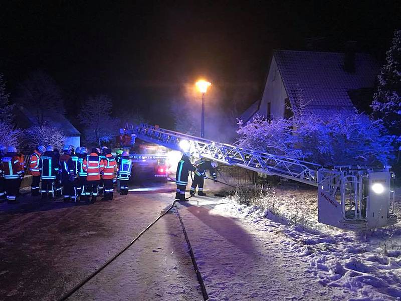 Vor Ort stellte der Einsatzleiter fest das der Kamin nur noch rauchte. Daraufhin entschied man sich mittels Drehleiter den Kamin von oben zu reinigen und die Holzheizung auszuschalten bzw. leerzuräumen. Nachdem 6 volle Schuttmulden mit Ruß und Holz aus dem Haus verbracht wurden, veranlasste man noch die Lüftung des Hauses mittels Drucklüfter. Nach ca. 1 1/2 Stunden rückten die Kräfte dann wieder ein.