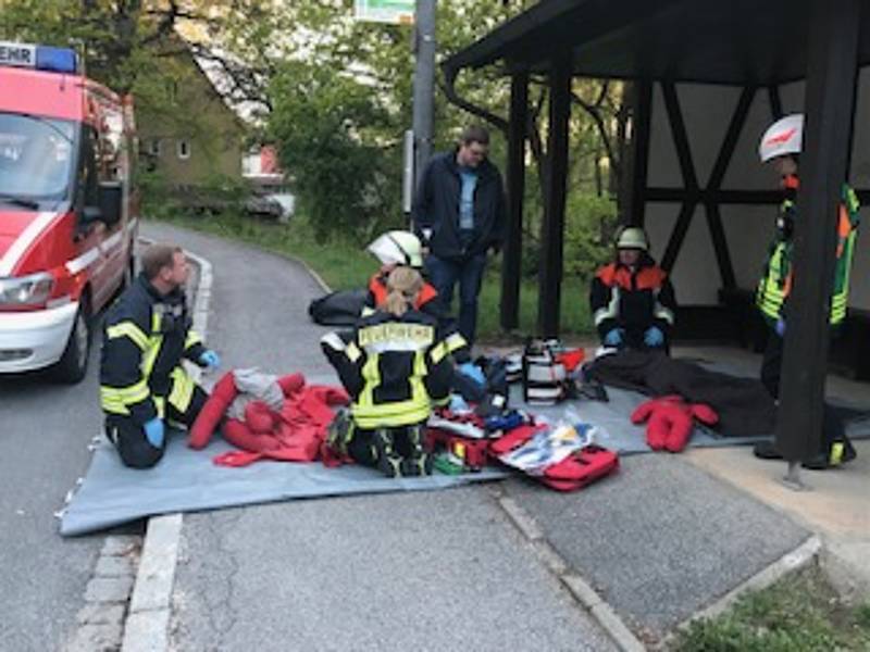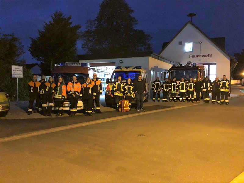 Der KTW sollte sich noch als äußerst hilfreich beim Einsatzszenario erweisen, welches nicht ohne Hintergedanken gewählt war, da nicht weniger als 7 Kameradinnen und Kameraden der FF Mimberg zu diesem Zeitpunkt kurz vor Ihrer Prüfung des First Responder Lehrganges standen und somit gleich nochmal Praxis sammeln konnten.
