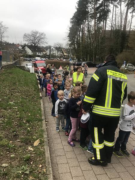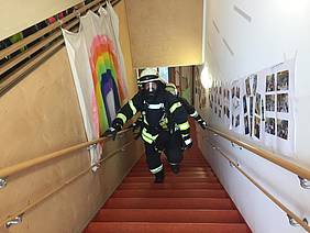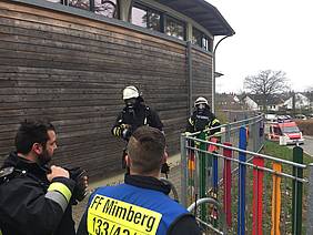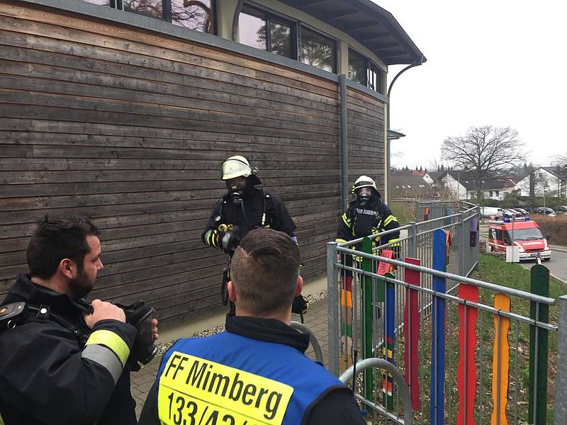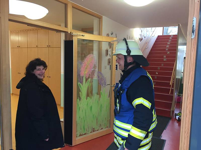In diesem Jahr wurde im Ev. Haus für Kinder „Die Buchfinken“ wieder in Kooperation mit der FFW – Mimberg und dem AWO-Seniorenheim das richtige Verhalten im Brandfall geübt. Damit diese Übung auch sehr realistisch abläuft, wurde der Termin im Vorfeld von Maik Heyden, dem Feuerwehrkommandanten der FFW-Mimberg, lediglich mit der Leiterin Petra Reinfelder abgesprochen.