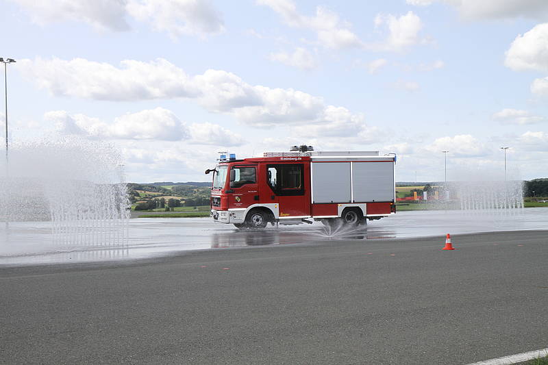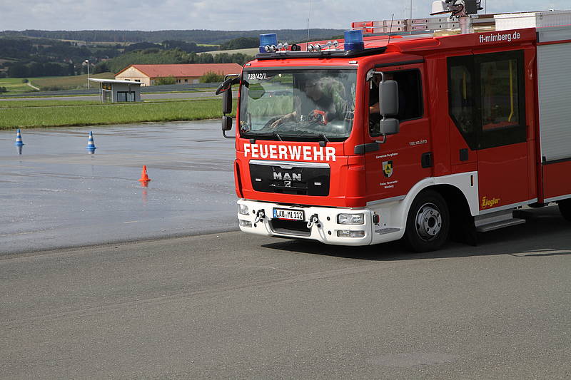 Im August fand zum zweiten Mal ein Fahrer Sicherheitstraining des ADAC speziell für Feuerwehren statt. Nachdem die Kameraden Fabian Wiedenhöfer und Franco Simon beim ersten Termin teilnahmen, waren bei dem zweiten Termin neben Kameraden aus Burgthann, Ezelsdorf, Unterferrieden, Winkelhaid, Eismannsberg und Altdorf die Kameraden Maik Brubacher und Wolfgang Seibold als Vertreter der FF-Mimberg mit dabei. Nach der Anreise zum ADAC Übungszentrum in Schlüsselfeld fand eine kleine theoretische Einweisung statt, ehe es dann direkt auf den Übungsplatz ging. Hier wurden neben den ersten Ausweichmanövern auf der trockenen Straße auch Themen wie optimale Sitzposition und Spiegeleinstellung vertieft. Weiter ging es dann mit Gefahrenbremsungen auf trockener und nasser Straße, sowie auf einer glatten Fahrbahn. Hier war es interessant selbst zu erfahren, wie kurz der Bremsweg mit teilweise nur 5 Metern bei einem Feuerwehrauto sein kann und somit der Abstand zum Vordermann bereits über einen Unfall entscheidet. Andererseits verlängert sich dieser auf nasser oder gar glatter Fahrbahn erheblich. Dies wurde dann bei Ausweichmanövern mit unterschiedlichen Geschwindigkeiten sehr deutlich. Nach einer kurzen Mittagspause kam neben weiteren Übungen auf der geraden der Höhepunkt mit Gefahrenbremsung bergab direkt in einer Kurve. Diese Übung wurde dann auch bergauf auf nasser Fahrbahn wiederholt um die Reaktion und das Verhalten des Fahrzeugs auch in dieser Situation kennen zu lernen.