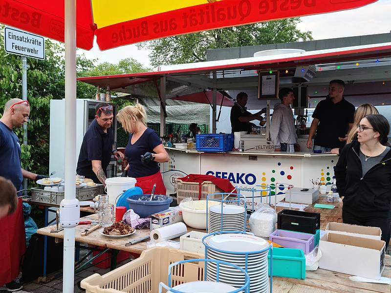 Ab 18:00 Uhr hieß es dann "Die Sau ist fertig". Erstmalig wurde neben der traditionellen Sau vom Grill auch "Pulled-Pork im Weggla" angeboten. Mit Steaks und Bratwurstbrötchen wurde das kulinarische Angebot abgerundet.