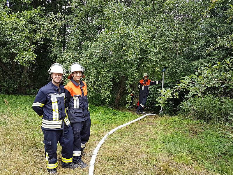 Der gesamte Ausbildungsinhalt verteilte sich - in Anlehnung an den Musterlehrplan zur Ausbildung der Freiwilligen Feuerwehren in Bayern (FwDV2) - über 8 Theorie- und Praxistermine. Das erlernte Wissen mussten dann alle 29 Teilnehmer bei der Abschlussprüfung, dem Aufbau eine 1,3 km langen Schlauchleitung und der anschliessenden Wasserförderung aus der Schwarzach bis zum Dorfplatz in Mimberg, unter Beweis stellen. Diese bestanden die Teilnehmer, unter den Augen der 16 Ausbilder und dem zur Prüfung anwesenden "KBM Ausbilder" Wolfgang Dümmler, ohne Probleme. Auch der Bürgermeister der Gemeinde Burgthann, Herr Heinz Meyer, machte sich vor Ort ein Bild über die Ausbildung und drückte den Prüflingen die Daumen zum Gelingen.